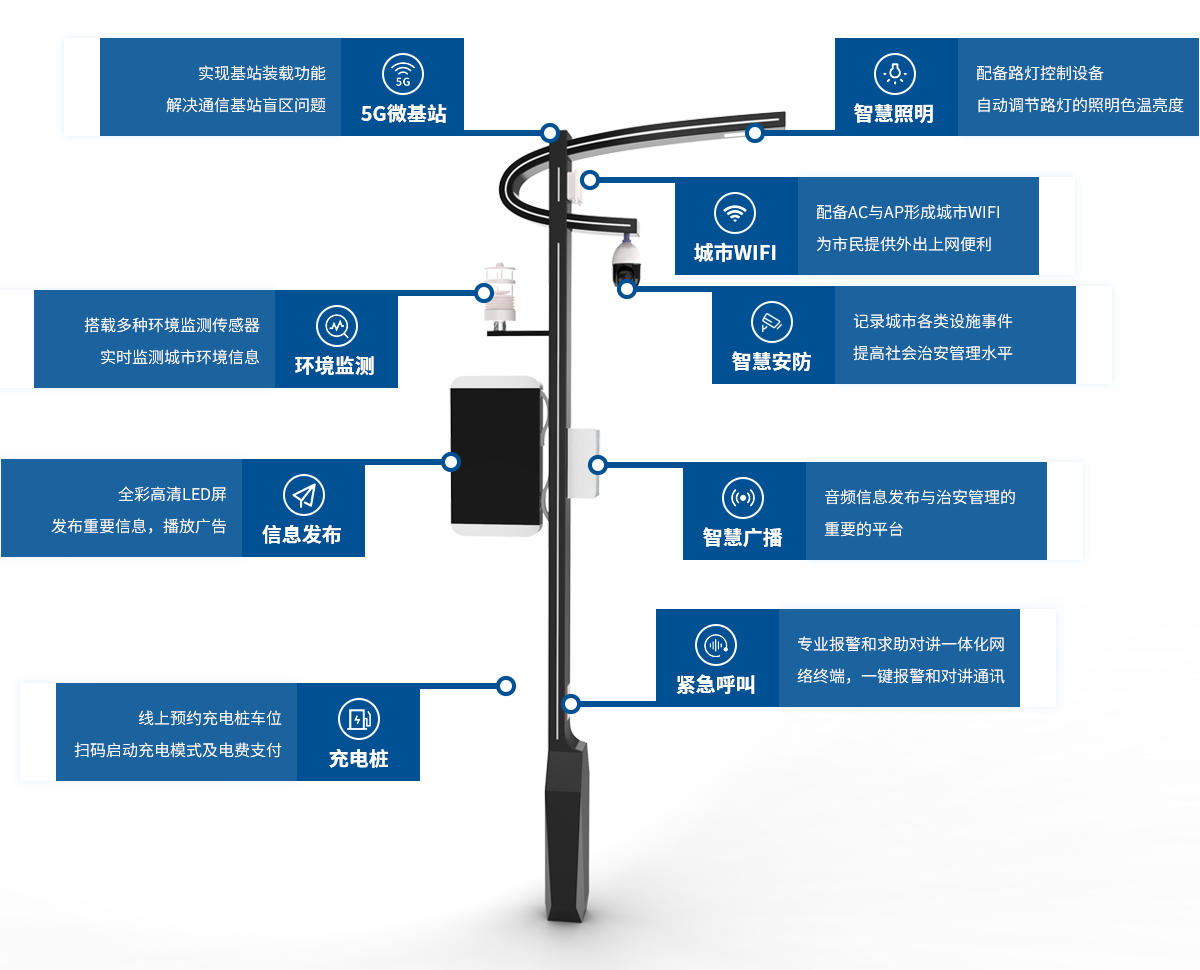 搭載各類檢測設備對民生、環(huán)境、公眾安全等海量感知信息進行處理分析,使社區(qū)、城市道路等照明達到“智慧”狀態(tài)。 有效控制能源消耗、大幅節(jié)省電力資源、提升公共照明管理水平,減低維護管理成本。